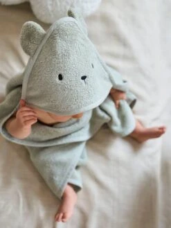 Bath Cape In Cotton Gauze + Bath Mitt For Babies, Little Dino Theme
