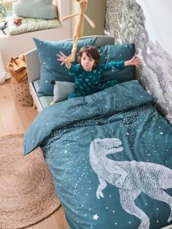 Duvet Cover + Pillowcase Set With Glow-in-the-Dark Details, Graphic Dino