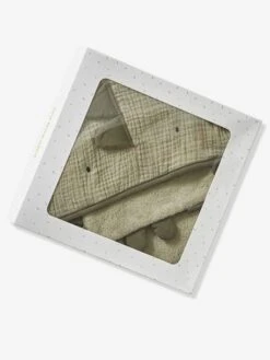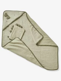 Bath cape + mitt set, Little Dino theme, in cotton gauze and pure cotton towelling 400gr/m2
