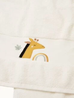 A very lightweight towel with an adorable delicately embroidered giraffe for a pleasant bath time!