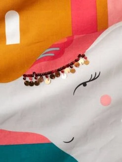 A colourful bed linen set which carries children off to the land of the Taj Mahal, majestic elephants and Bengal tigers! For a complete set, team it with the Eden India fitted sheet sold on our website.