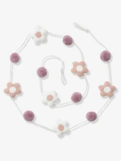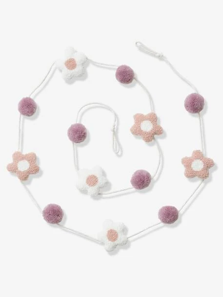 Garland with flowers and pompoms in bouclé knit: 100% cotton.