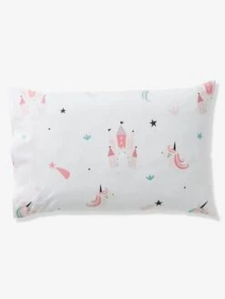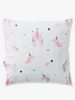 Let the magic in! The duvet cover + pillowcase set with amazing castles and unicorns, with reversible sequins to keep your child company in her dreams!