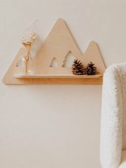 This mountain-shaped shelf with its little fir tree cut-outs will add a touch of nature to your interior decor.