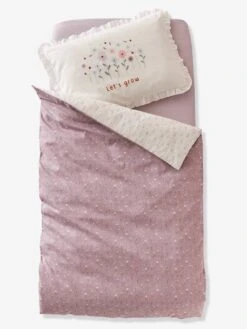 A reversible duvet cover that features two sides with a lovely floral print. One side on purple background and one side on an ecru background to adapt to the décor of your desires!
