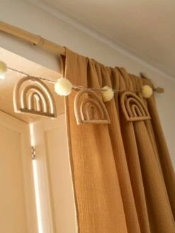 Soft and lightweight colours and a delicate fabric set off the bedroom window with this lovely sheer curtain.