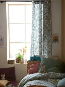 With this curtain that allows for some light to shine through, children can travel without leaving the house! We love the very trendy foliage that makes the room look like a real jungle