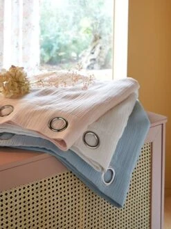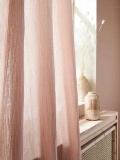 This charming sheer curtain beautifully adorns the bedroom window with its soft colours, lightness and muslin softness.