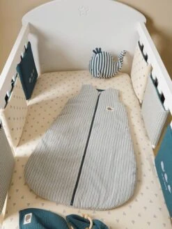 This very soft baby sleeping bag promises quiet nights for baby. In striped linen-effect textured cotton, it’ll tenderly accompany your child when sleeping.