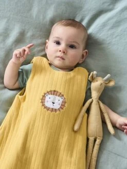 A lightweight baby sleeping bag, ideal for warm nights, to cover baby in softness and to ensure they have safe sleeps. We love the effect of its wide rib and the adorable animal appliqué as well as the embroidery on the chest.