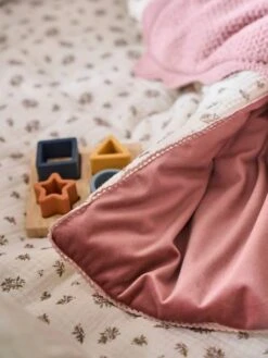 A wonderful, very soft dual fabric throw to wrap baby in softness. One side in delicate cotton gauze, the other side in ultra-soft velour for the elegant look that we all love.