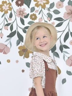 With an autumn feel, flowers fall softly from the ceiling. Ideal for a romantic headboard, a floral panoramic wallpaper designed by artist Anna Talavrinova. Part of the sweet Capucine world: a natural scenario, full of characters for girls’ bedrooms.